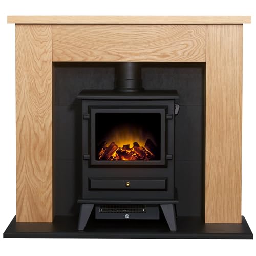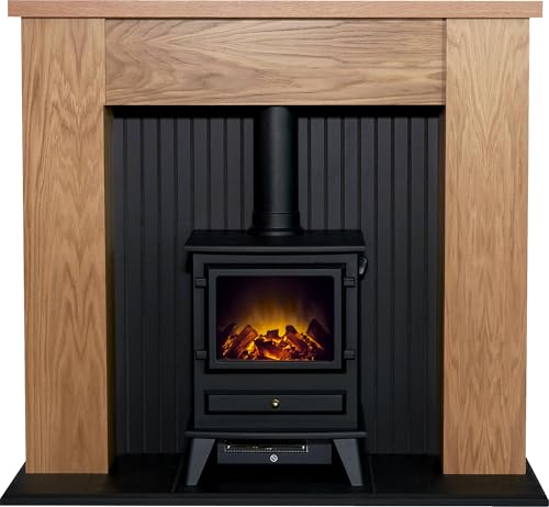 Adam Chester Stove Fireplace in Oak& Black with Hudson Electric Stove in Black, 39 Inch