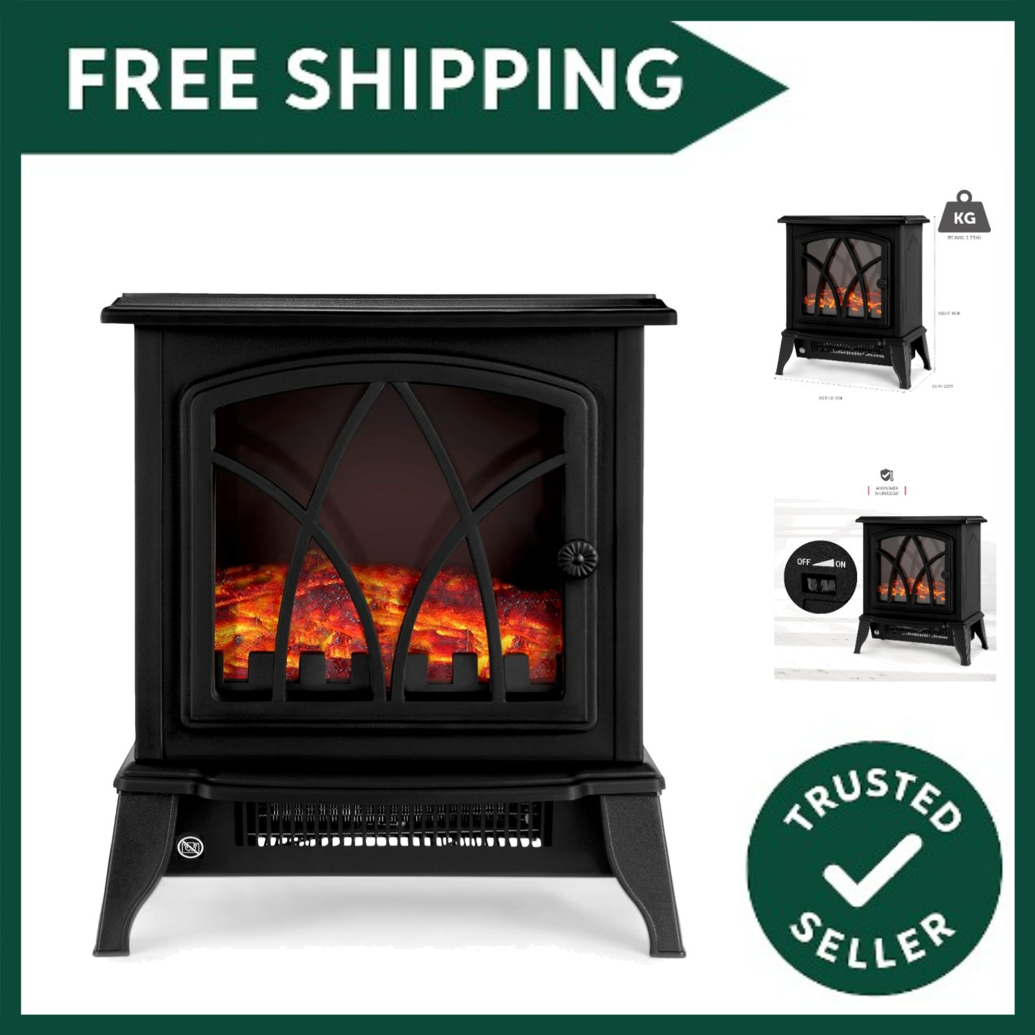 Freestanding Electric Fireplace Heater Black Stove w/ LED Flame Effect Black