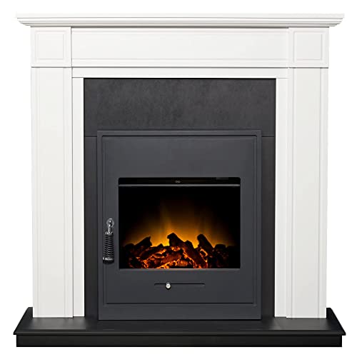 Adam Georgian Fireplace in Pure White& Black with Oslo Electric Inset Stove in Black, 39 Inch