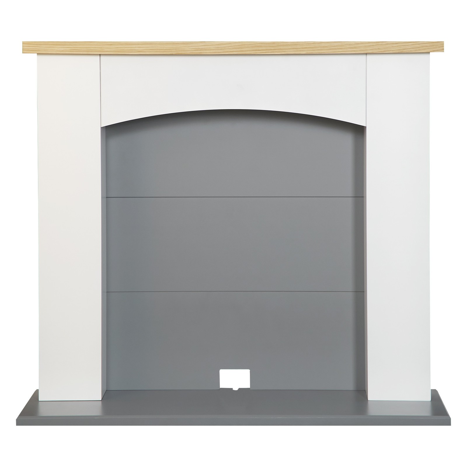 Endeavour fires Farlington Electric Fireplace, Black Log Burner Stove in 48'' Off White Surround, LED Downlights with Remote Control (Grey Top/Grey Brick)