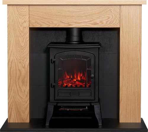 Adam Chester Stove Fireplace in Oak & Black with Sureflame Keston Electric Stove in Black, 39 Inch