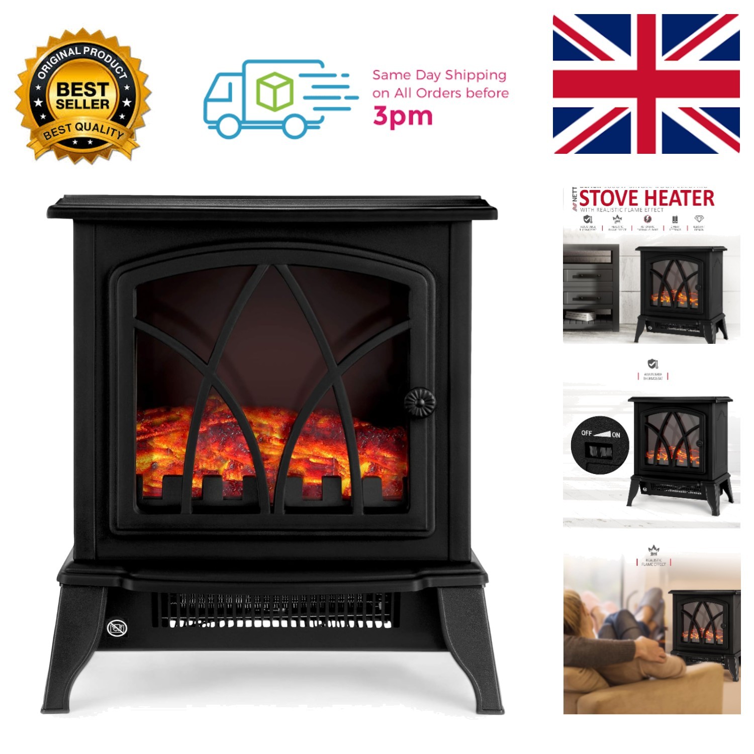 NETTA Stove Heater Electric Fireplace With Fire Flame Effect, Freestanding Portable Electric Log Wood Burner Effect - 1900W