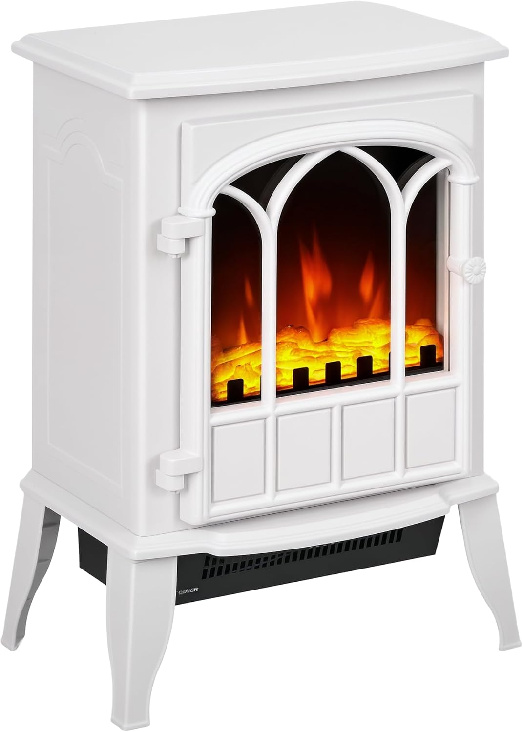 White Electric Fireplace Freestanding Stove Heater Glass Door LED Flame Effect