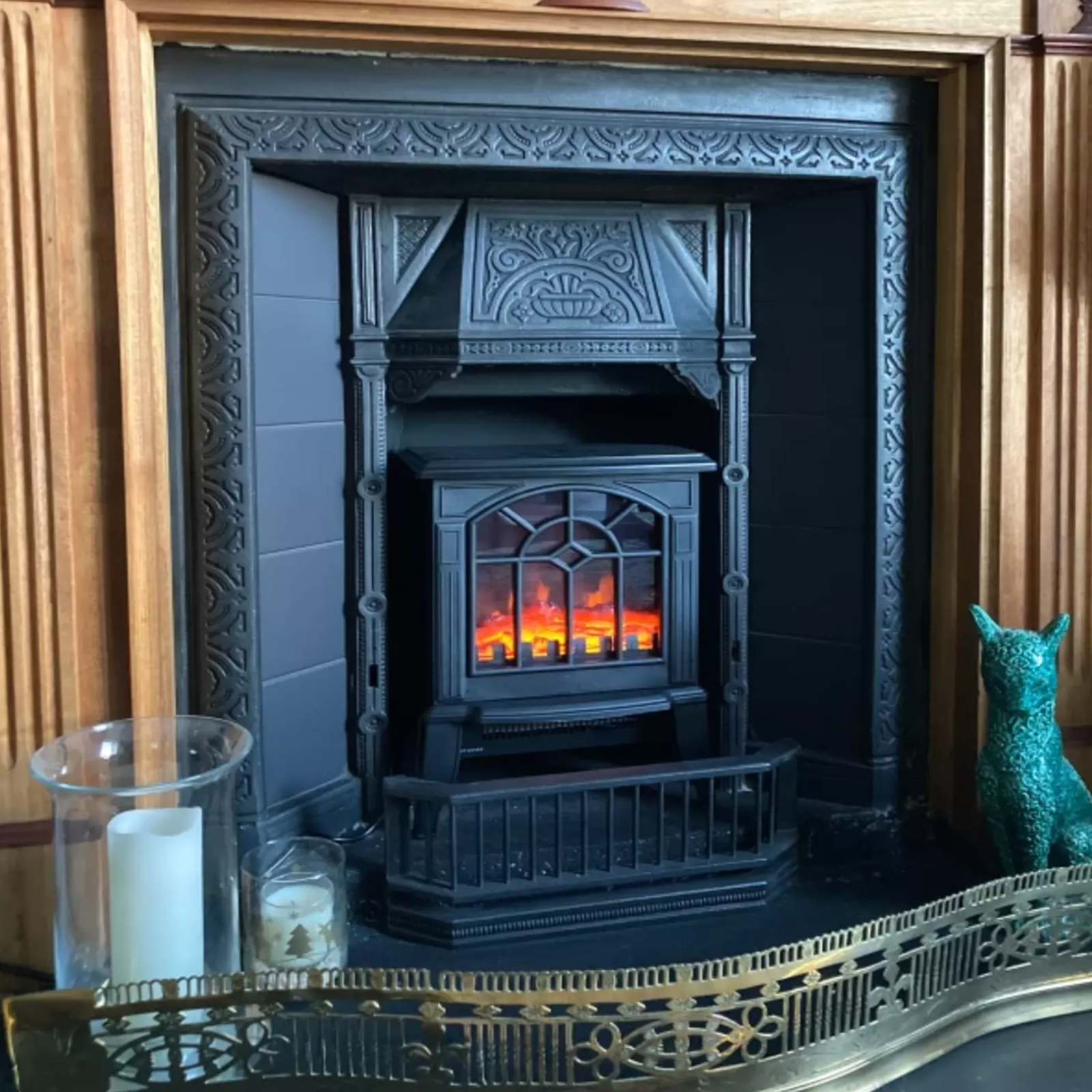 Black Vintage Fireplace Electric Freestanding Stove Fan Heater Log Burner Effect