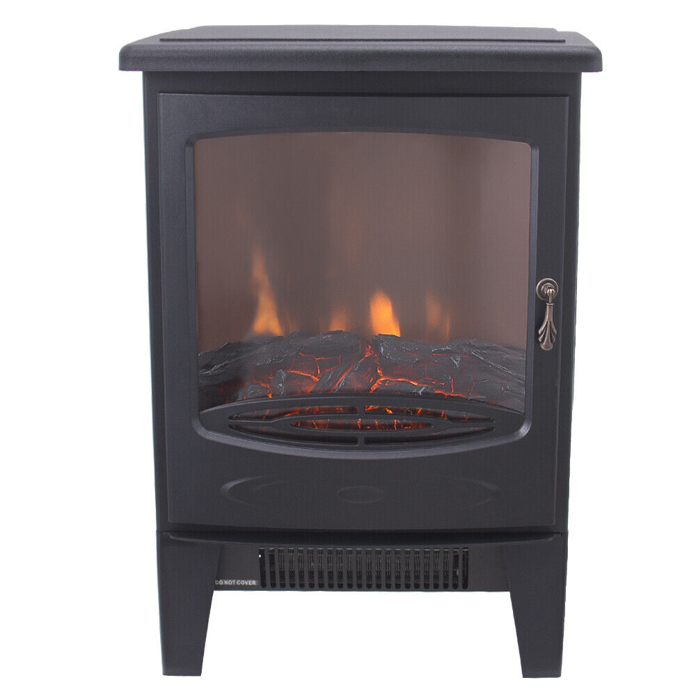 Freestanding Electric Fireplace Heater Black Stove w/ LED Flame Effect Black