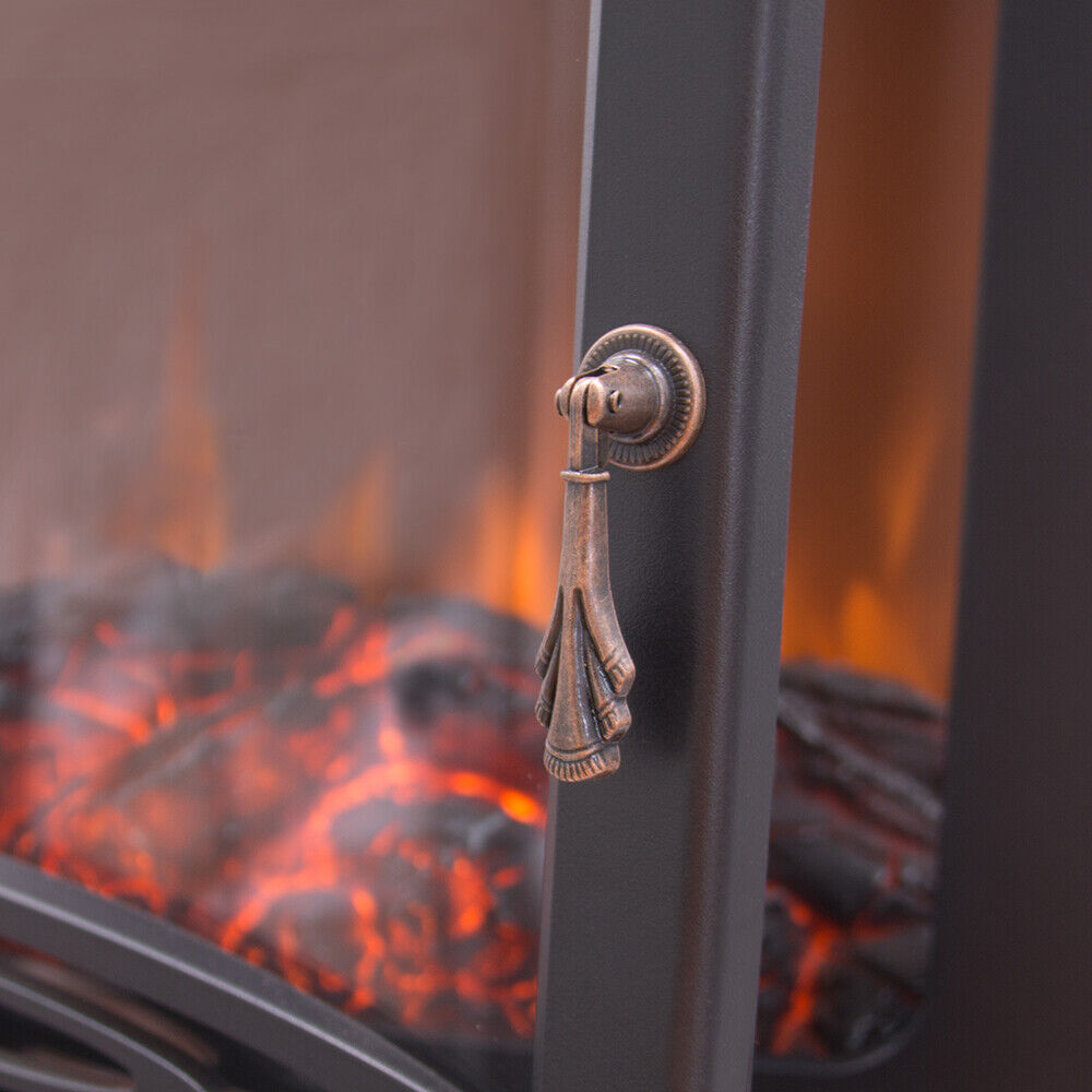 Black Electric Fireplace Stove Heater, 39x26x54.8cm, Steel & Glass, Flame Effect