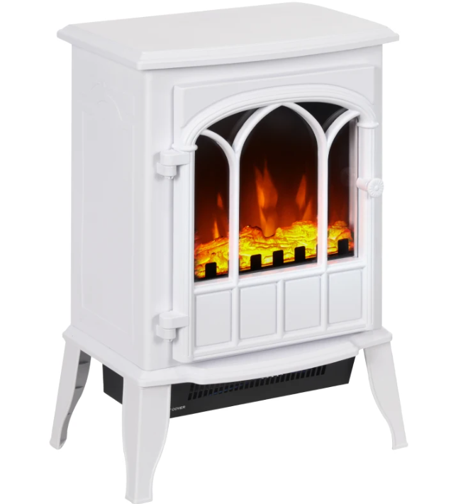 HOMCOM Freestanding Electric Fireplace Stove Heater with Realistic Flame Effect in White