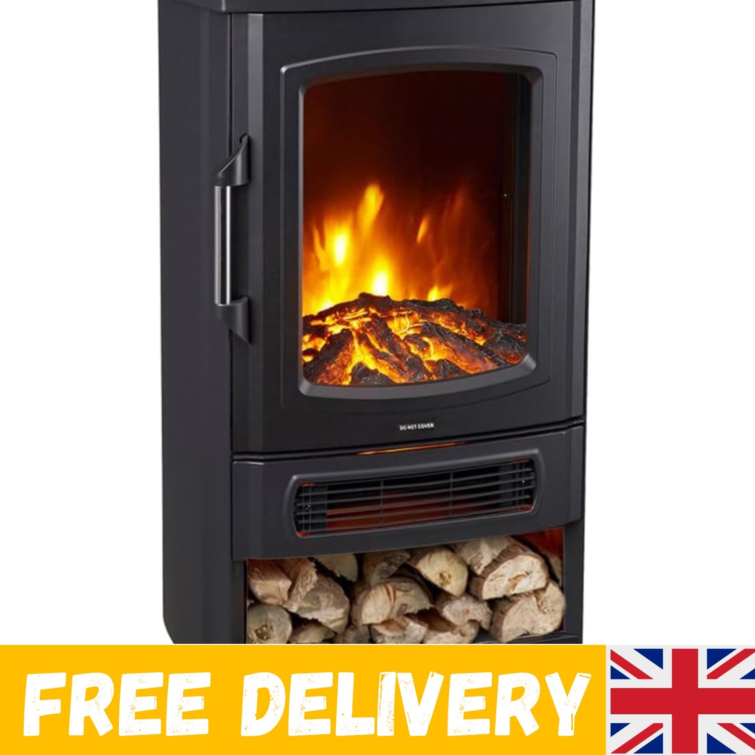 Electric Fireplace Stove Heater - 1500W Electric Stove with Wood Burner Effect for Living Room, 3D Flame, electrifying fireplace, 2 Heat Settings