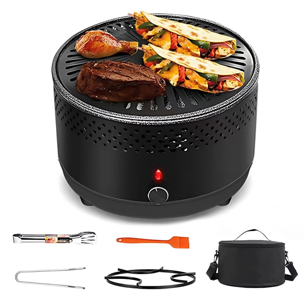 Smokeless Charcoal BBQ Grill with Electric Fan, Adjustable Heat, Tabletop for Camping and Outdoor Cooking