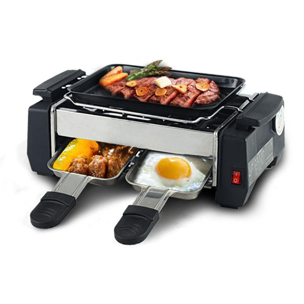 Electric Raclette Tabletop BBQ Grill 2 in 1 with Adjustable Temperature and Nonstick Tray for Party