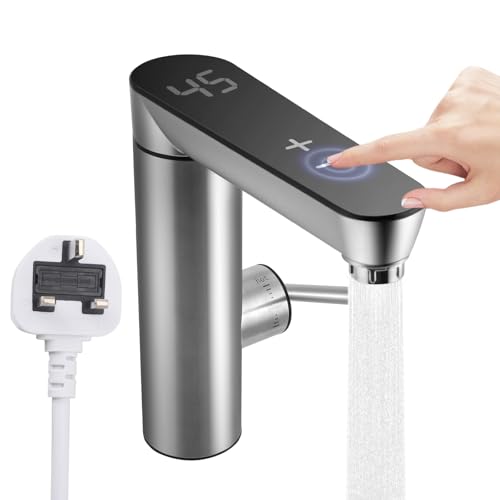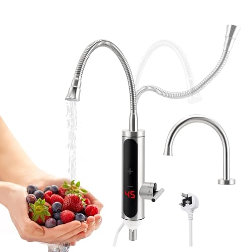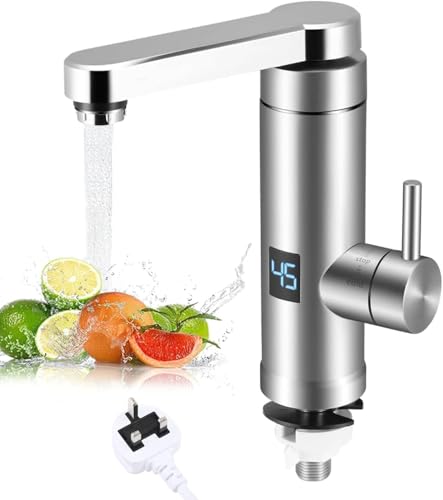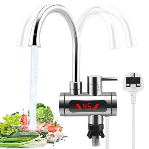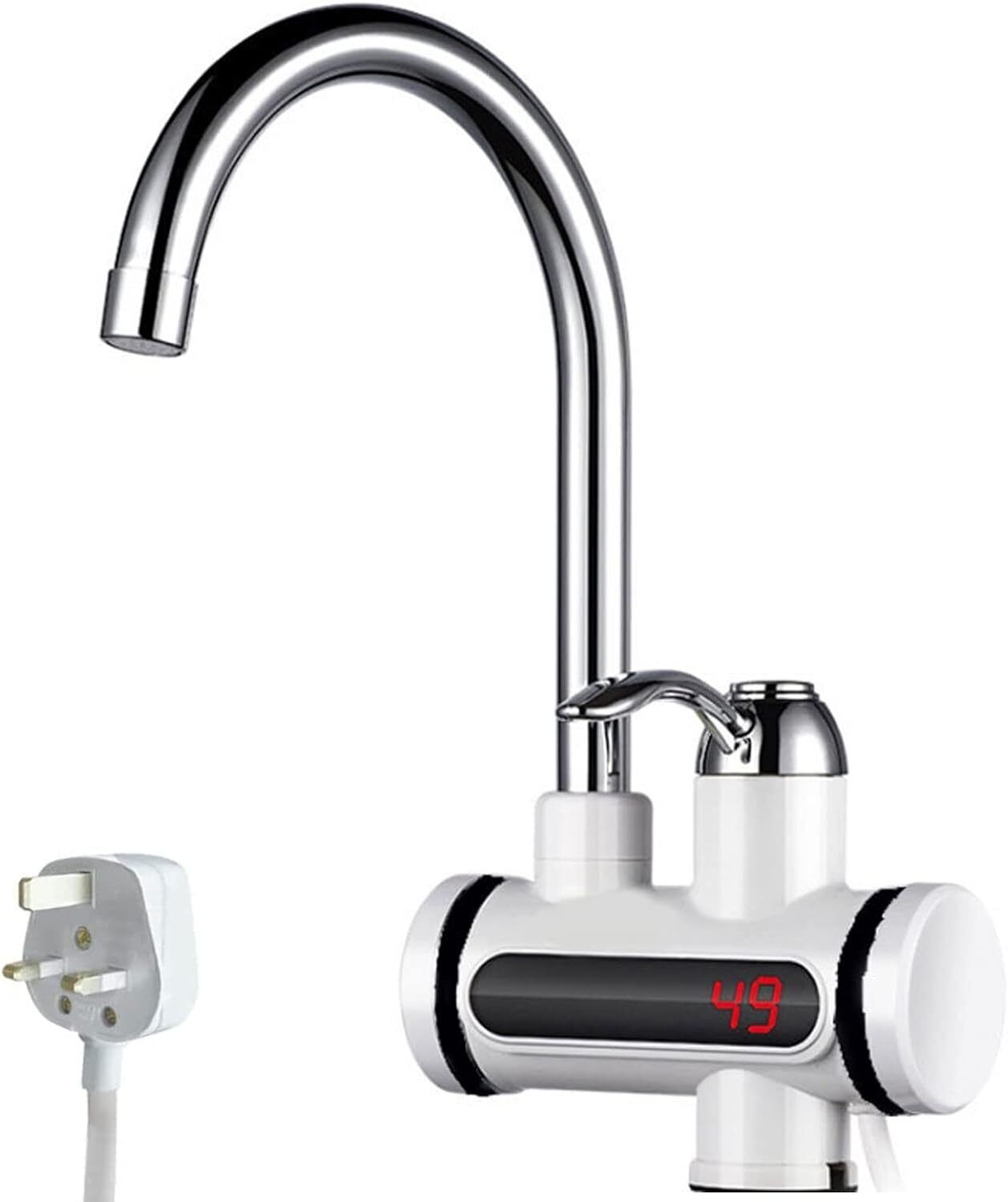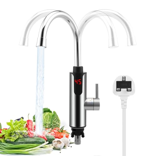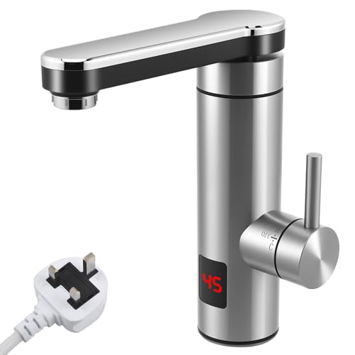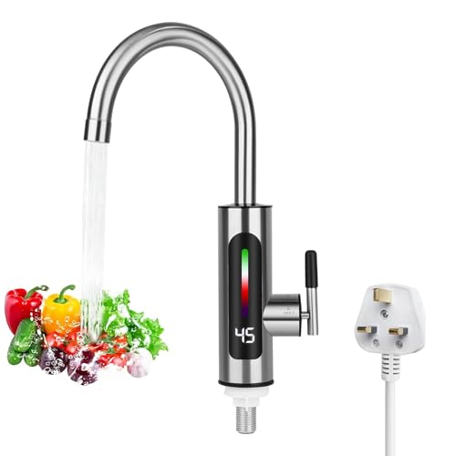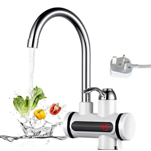 Instant Hot Water Tap, Electric Tap UK Plug, 220V 3000W Electric Hot and Cold Mixer Water Faucet with LED Digital Display for Kitchen Bathroom