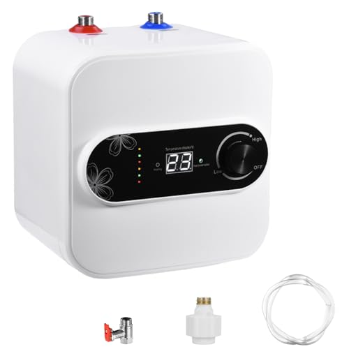 Bellanny Mini Electric Water Heater, 1.5KW 220V Electric Instantaneous Water Tap with 10L Water Tank, IP4X Waterproof Under Sink Water Heater with LCD Digital Display & Temperature Knob, UK Plug