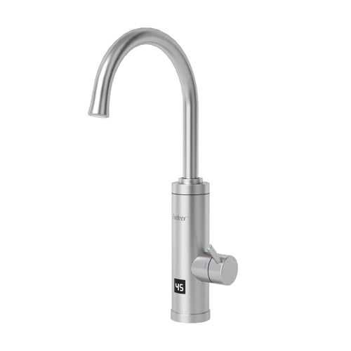 Fudeer 220V Electric Hot Water Tap for Kitchen, 3.3Kw Instant Hot Water Faucet, 360 Degree Rotate Stainless Steel Water Heater Tap with Digital Display 30-45℃(Silver)