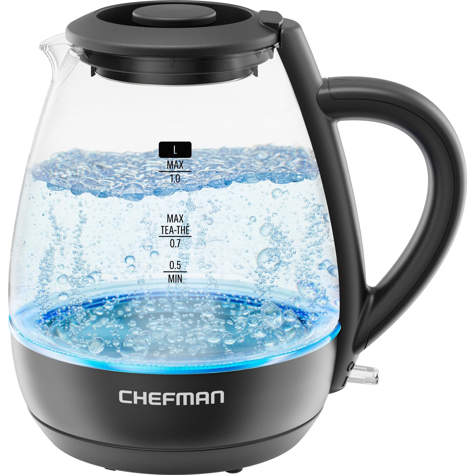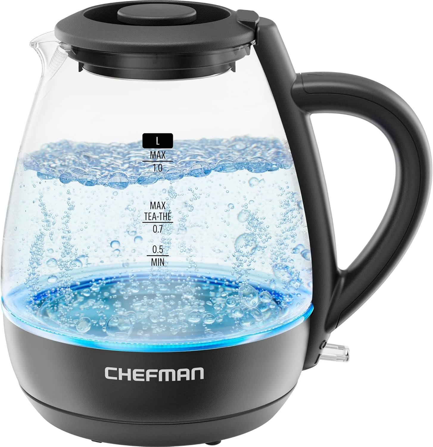 Chefman 1L Electric Tea Kettle with LED Lights, Automatic 1 Litres, Black