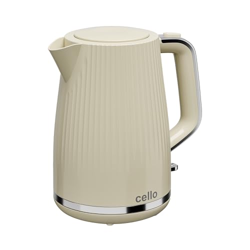 Cello Cream 1.7L 3000W Electric Rapid Boil Kettle with 360° Base, Electric Tea Kettle for Boiling water with Automatic Shutoff, Cordless, Illuminated Switch, Concealed Element & Washable Filter