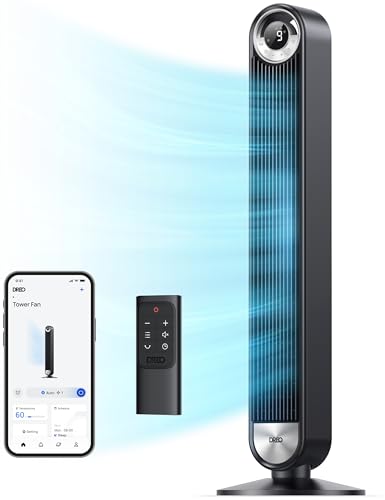 Dreo 25dB Smart Silent Tower Fan, 28 ft/s Velocity Standing Fan for Bedroom, 9 Speeds 4 Modes, Upgraded DC Cooling Fans, 90° Oscillating Bladeless Electric Fans, 12H Timer, WiFi/Alexa/Remote Control