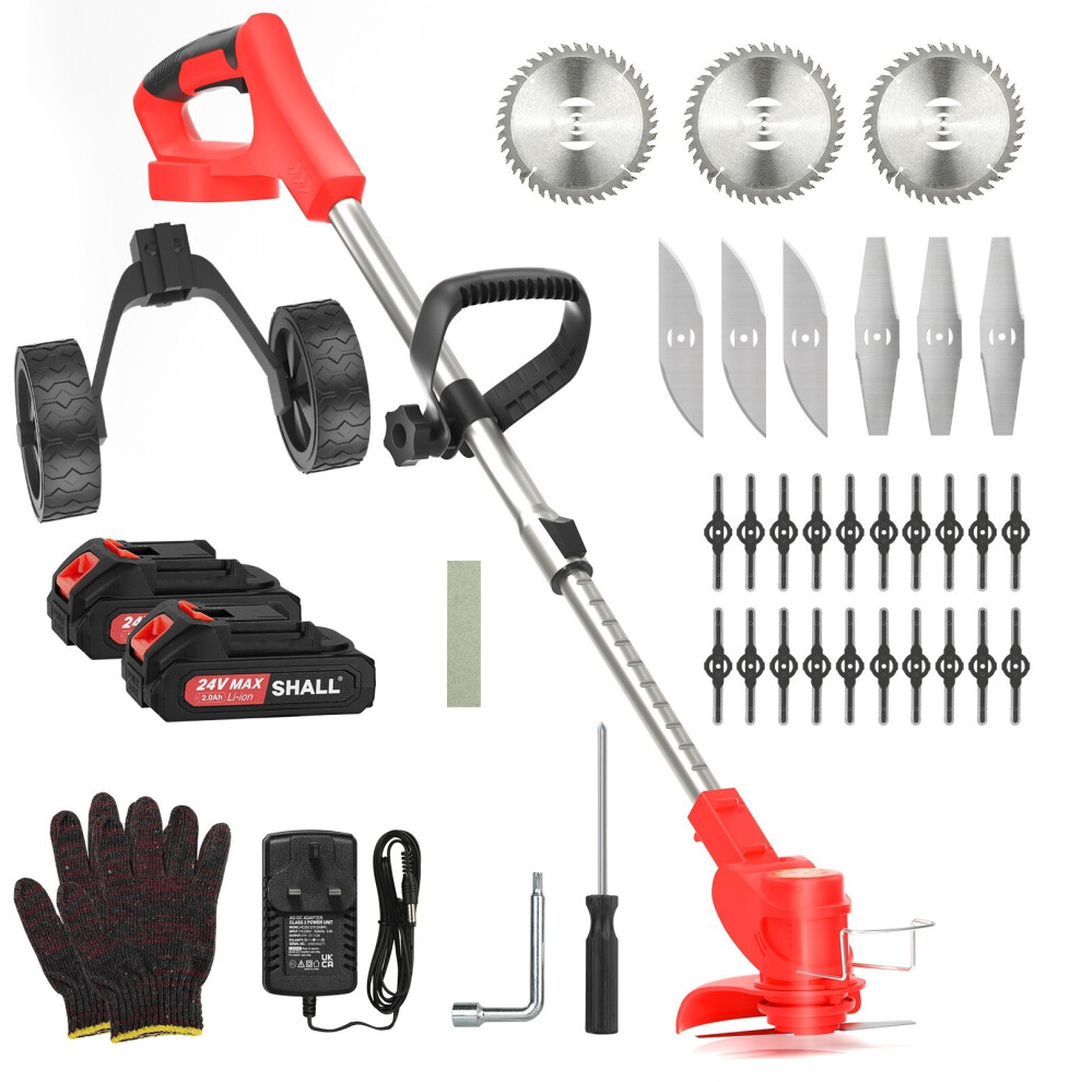 3-In-1 SHALL 24V Cordless Strimmer Grass Trimmer Electric Tree Garden Weed Cutter UK 2 x 2.0Ah Battery