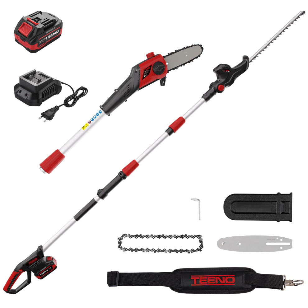 TEENO 2-in-1 Cordless Hedge Trimmer & Chainsaw Set - 4.0 Ah Battery Powered Electric Pole Saw & Hedge Cutter for Garden Tree Trimming - Includes