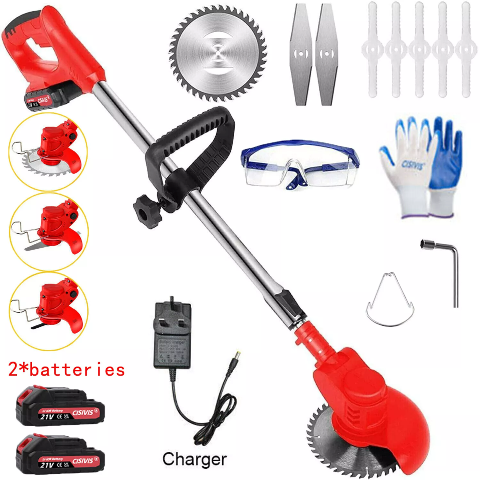 Cordless Strimmer Grass Trimmer Electric Tree Cutter Edger 2 Battery