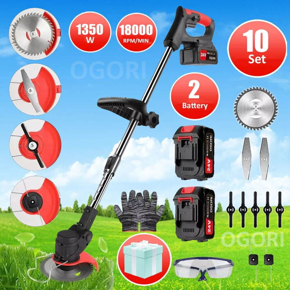Cordless Strimmer Grass Trimmer Tree Cutter 24V Garden Edger Electric 2 Battery