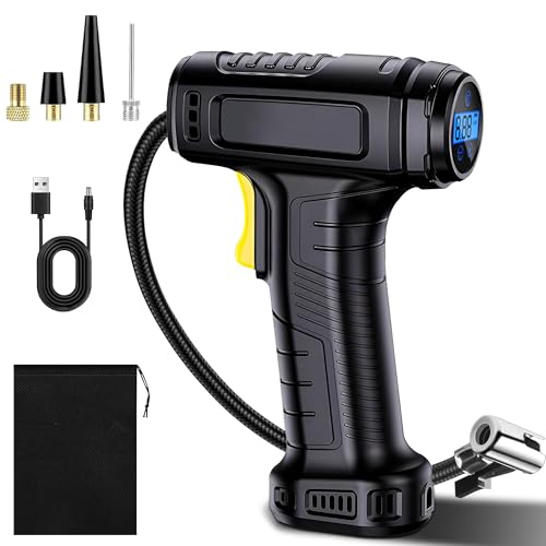 ProChosen Cordless Tyre Inflator Air Compressor, 150PSI Rechargeable Car Tyre Inflator Tyre Pump, Electric Bike Pump Air Pump Digital Display Portable Car Pumps for Tyres with LED Light