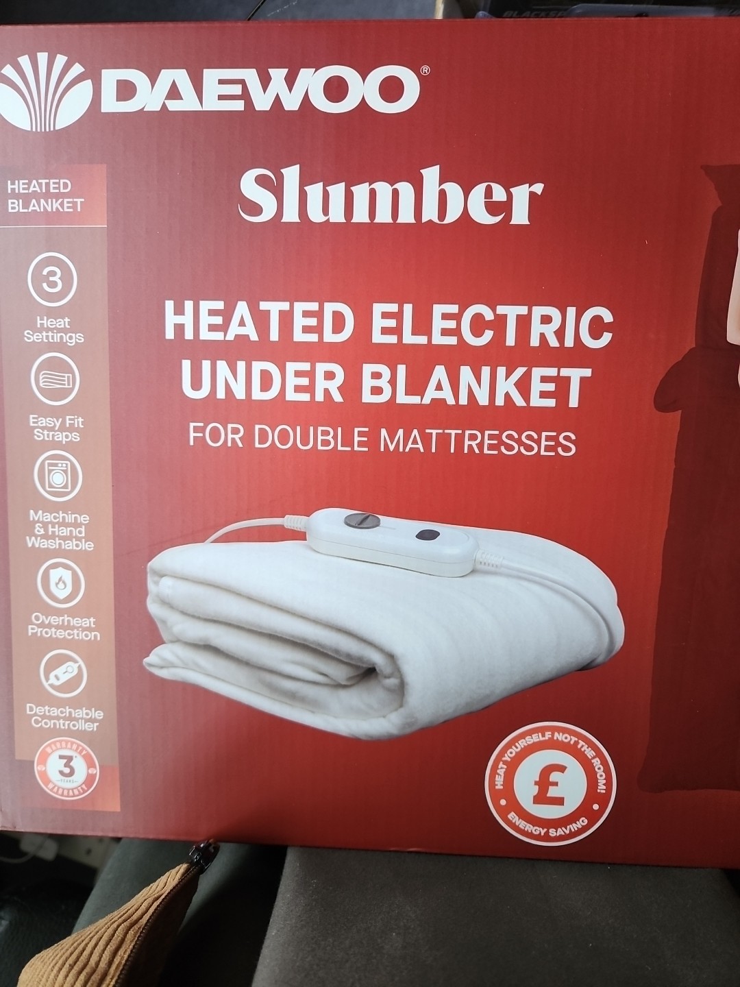 Daewoo Electric Blanket 3 Settings Heated Under Bed Winter Warming 85W - DOUBLE