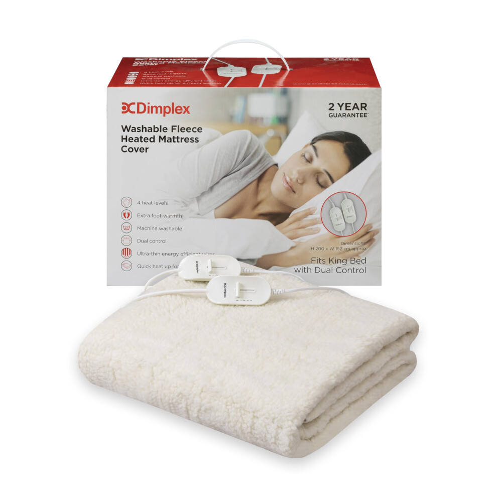 Dimplex DXMCKD Heated Under Blanket - King, Machine Washable Electric Blanket with Extra Foot Warmth, Cosy 100% Polyester Finish, Energy Efficient Low Cost Warmth - (White)