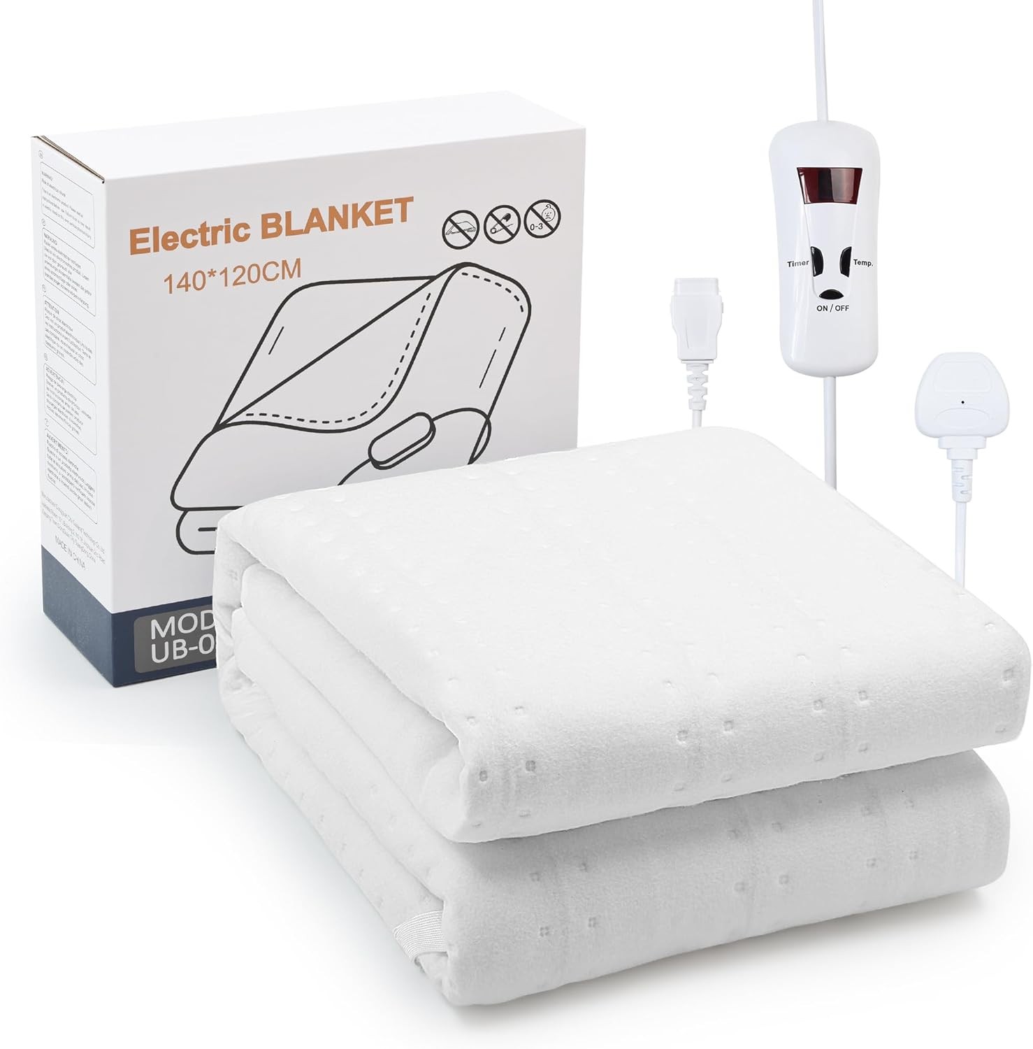 Sunkissoon Electric Blanket,Heated Electric Underblanket with 4 Heat Settings,3 Timers Settings,LED Display,140 * 120CM White Heated Throw(Double)