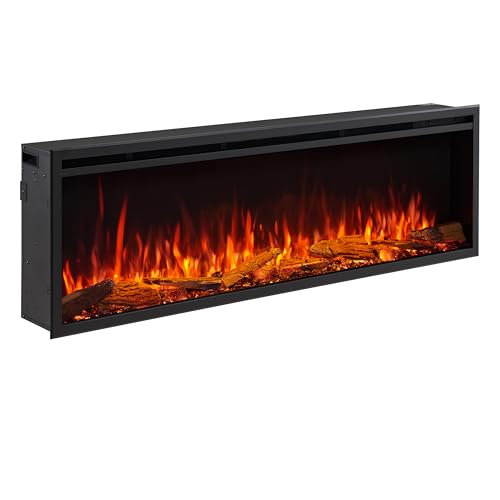 INMOZATA Electric Fireplace Wall Mounted Recessed 60inch Electric Fire Heating Insert into Wall Electric Fire Heater Touch Remote Control 9 LED Color Flame Effect, Crystal with Log Set(60inch)