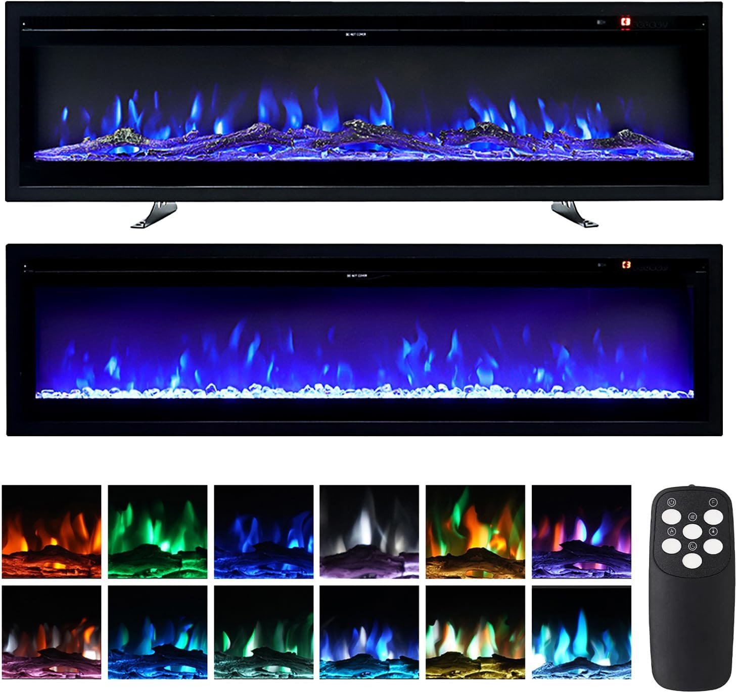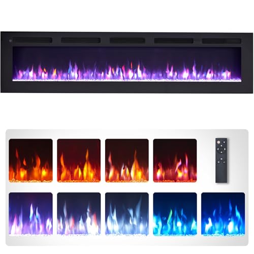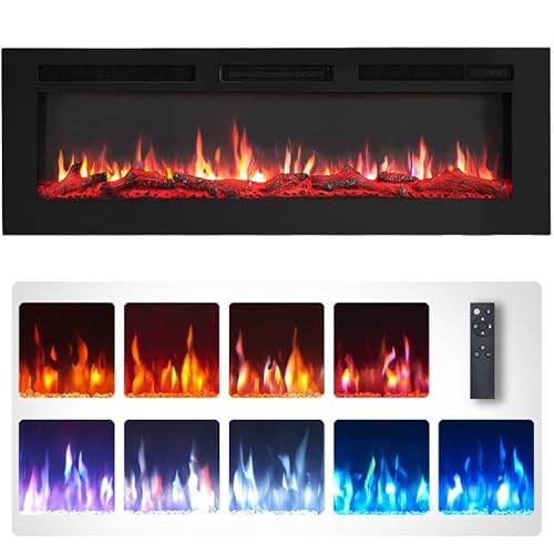 Living And Home Electric Fireplace Wall Mounted Inset Into Fire Heater LED 12 Flames with Remote, 60 Inch