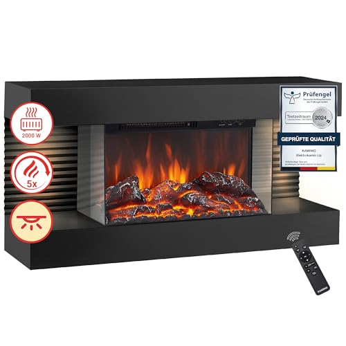 KAMINIO Electric Fireplace Liz - Electric Wall Fireplace with Heater, 3D Flame Effect, LED ambient light, Remote Control (Black)