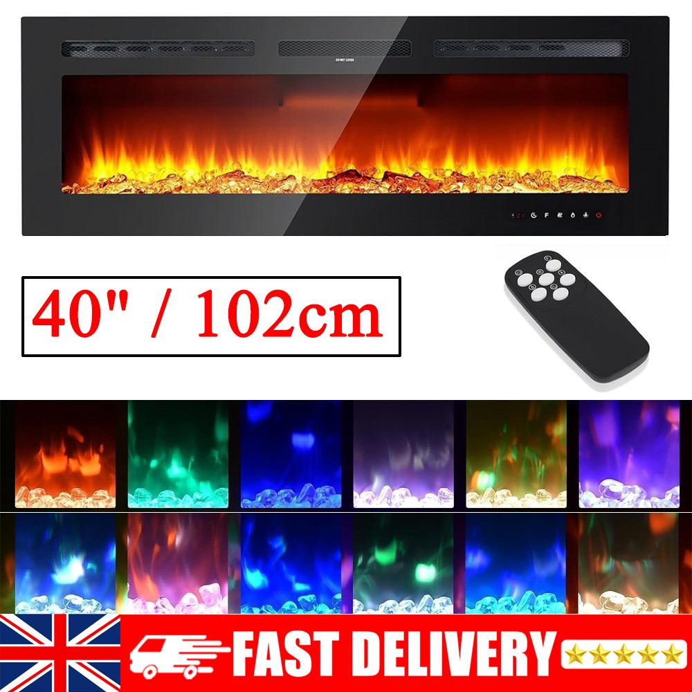 40"/102cm Electric Fireplace Wall Mounted/Recessed 12 LED Color Flame Fireplace