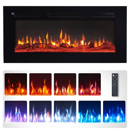 Living And Home (40 Inch) Electric Fireplace Wall Mounted Inset Into Fire Heater LED 12 Flames with Remote