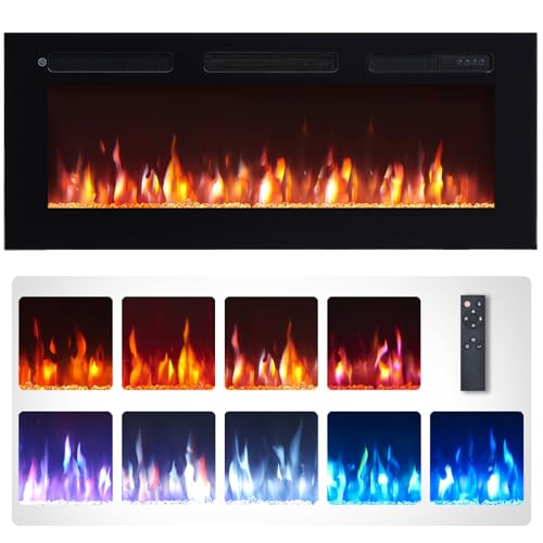 Living And Home (50 Inch) Electric Fireplace Wall Mounted Inset Into Fire Heater LED 12 Flames with Remote