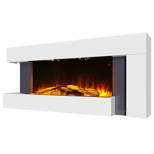 INMOZATA Electric Fireplace Wall Mounted/Free Standing 52inch /132CM Electric Fire Suites in White 7 day Programmable Remote Control Electric Fire Heater with Flame Effect and Moon Lighting