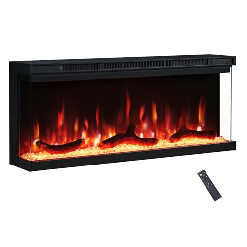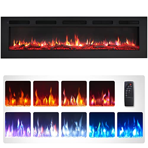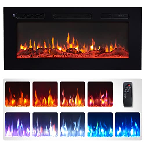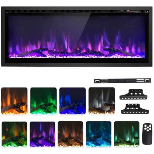 INMOZATA Electric Fireplace Wall Mounted Insert Recessed 50 inch Wall Electric Fires Heater Touch Remote Control 9 LED Color Flame Effect, Crystal with Log Set (50inch)