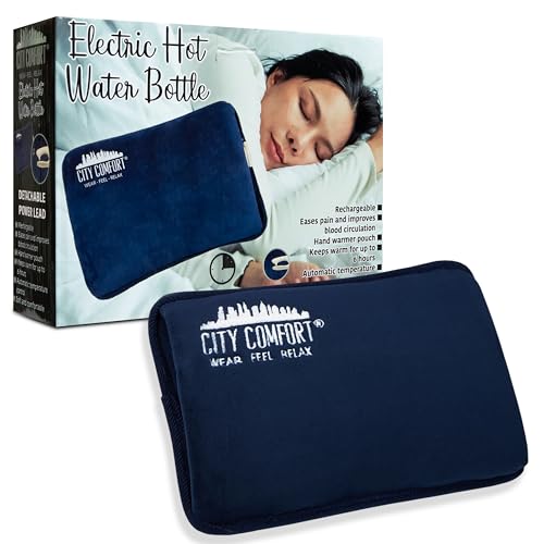 Rechargeable Electric Hot Water Bottle Heat Pad 6 Hour Warmth Temperature Control Detachable Lead Cosy Bed Warmer Hand Warmer Pouch Gifts (Navy)