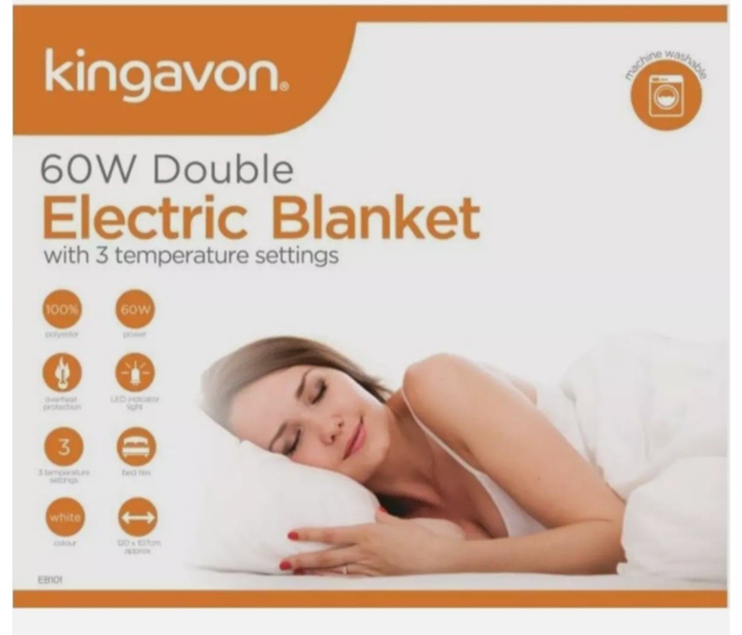 Double Electric Blanket 120 x 107cm Kingavon 3 Heat settings Warmer Bed Washable