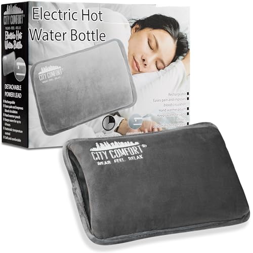 Electric Rechargeable Hot Water Bottle Grey Bed Hand Warmer Massaging Heat Pad