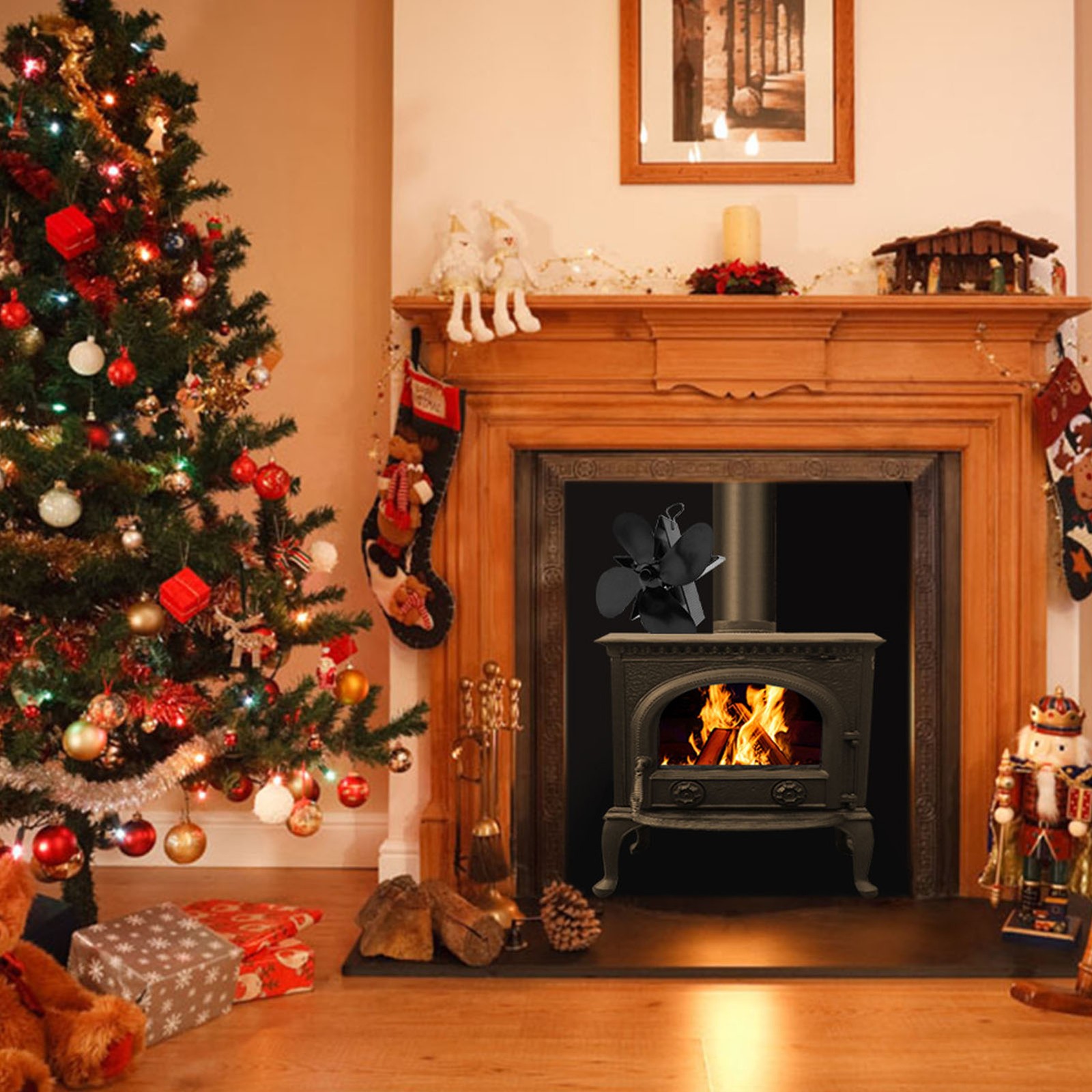 Fireplace Fan - Non-Electric Fan for Stove,Thermal Fans, No Electricity Required, Quiet Circulating Warm Air, Wood Stove Accessories