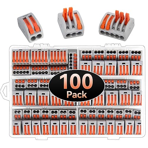 Compact Wire Connectors, Preciva 100pcs Splicing Connector, Lever Nut Assortment Conductor, Electrical Cable Blocks with 50pcs Clamps for 3-Port, 40pcs for 2-Port, 10pcs for 5-Port