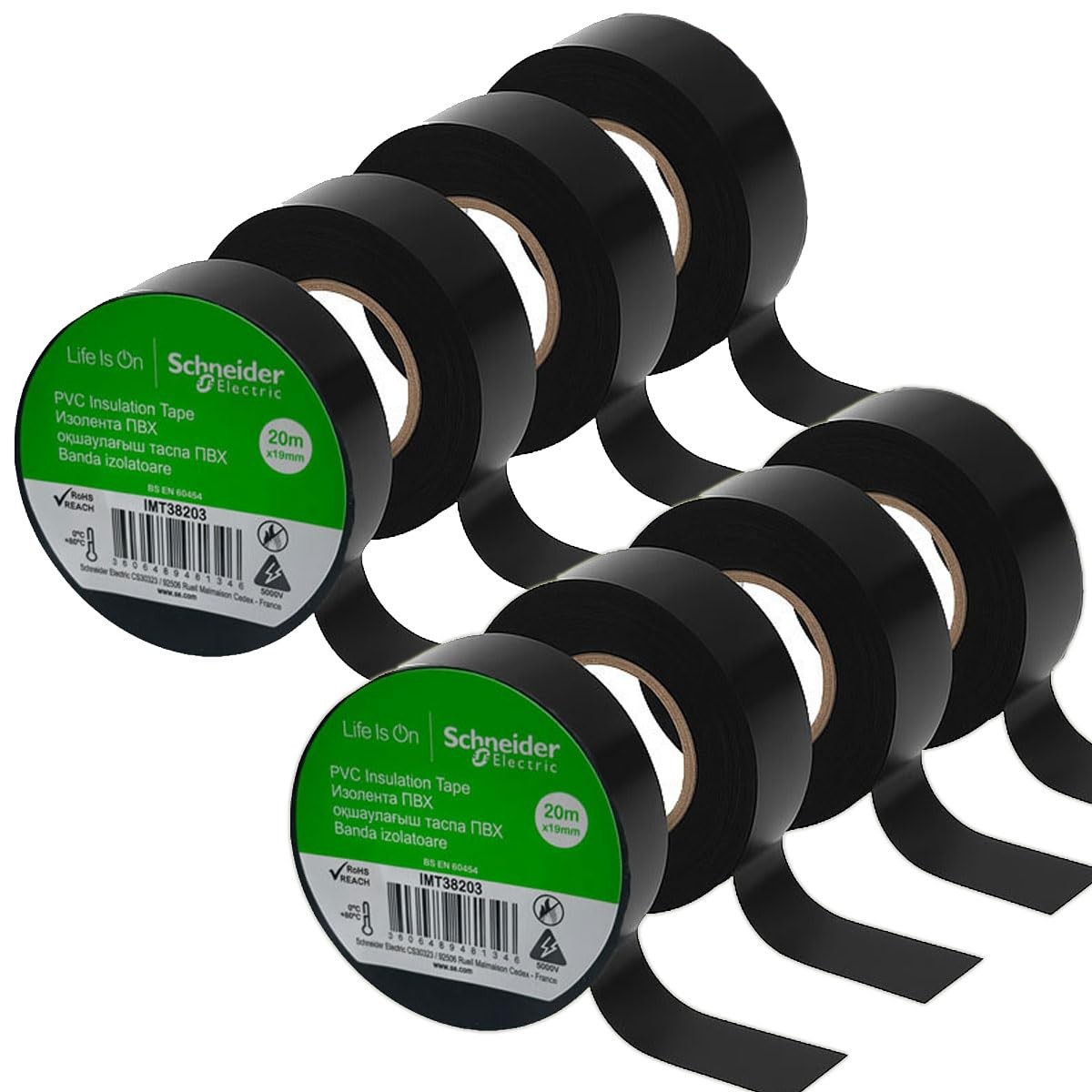 Schneider Electric Premium PVC Electrical Tape Black 19mm x 20m (Pack of 8) –