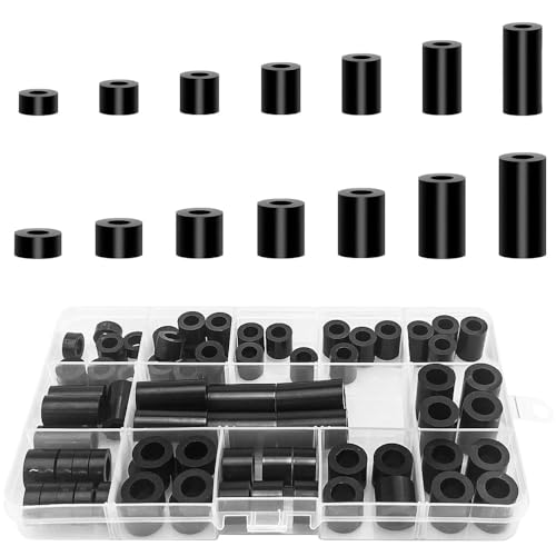 90pcs Round Spacer Washer Assortment, Nylon Insulation Screws Spacers M6 M8 Non Threaded Column Standoff Support for Electrical Equipment, 14 Different Sizes