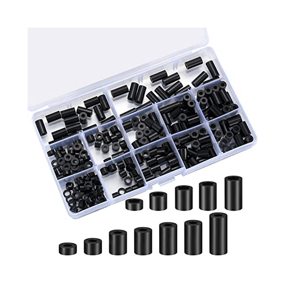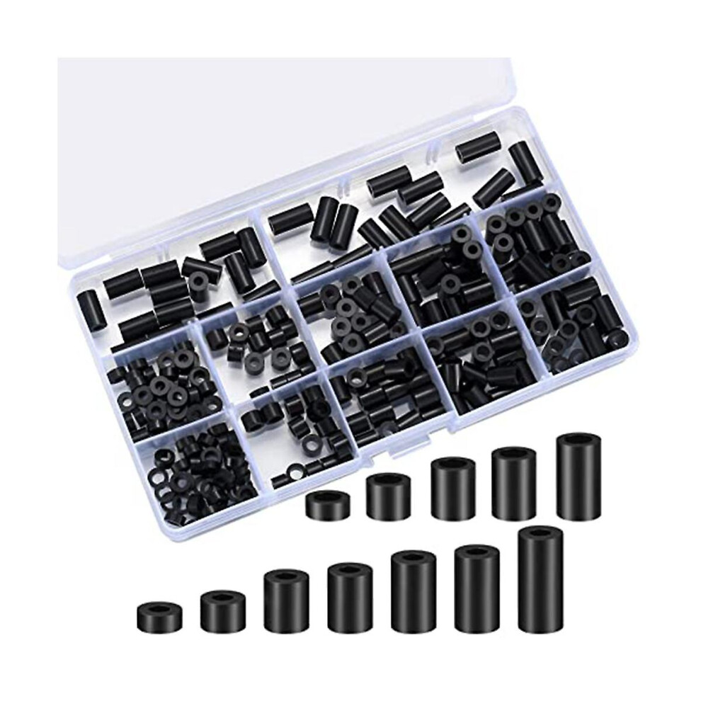 round screws spacers 320 Pcs Electrical Outlet Screws Spacers, Black Nylon Round Spacer Assortment Kit, Plastic Spacers Without Threaded