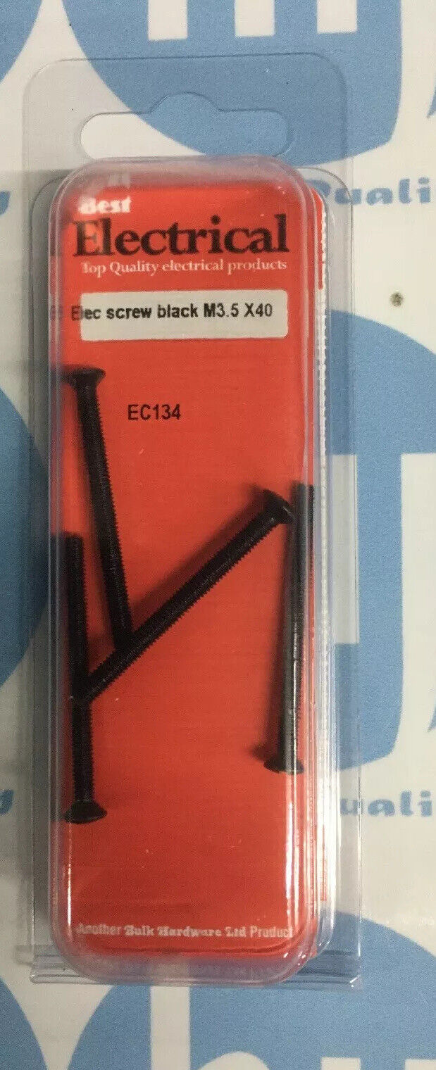 Pack of 10 Electrical Screws 40mm Black Nickel M3.5 Long Socket Screw Switch Plugs Fixings Flat Slotted Head Fully Threaded Bolt