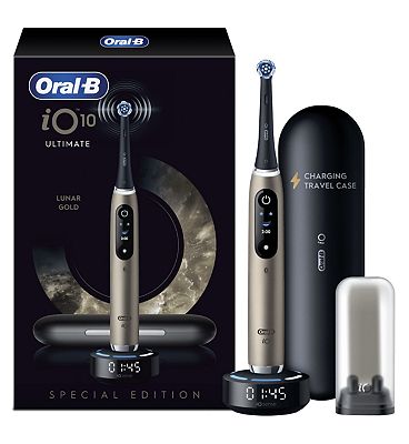 Oral-B iO10 Electric Toothbrush Lunar Gold, 1 Brush Head, 1 Charging Travel Case, 1 Refill Holder