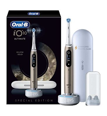 Oral-B iO10 Electric Toothbrush Eclipse Gold, 1 Brush Head, 1 Charging Travel Case, 1 Refill Holder