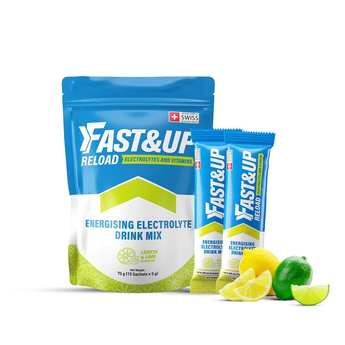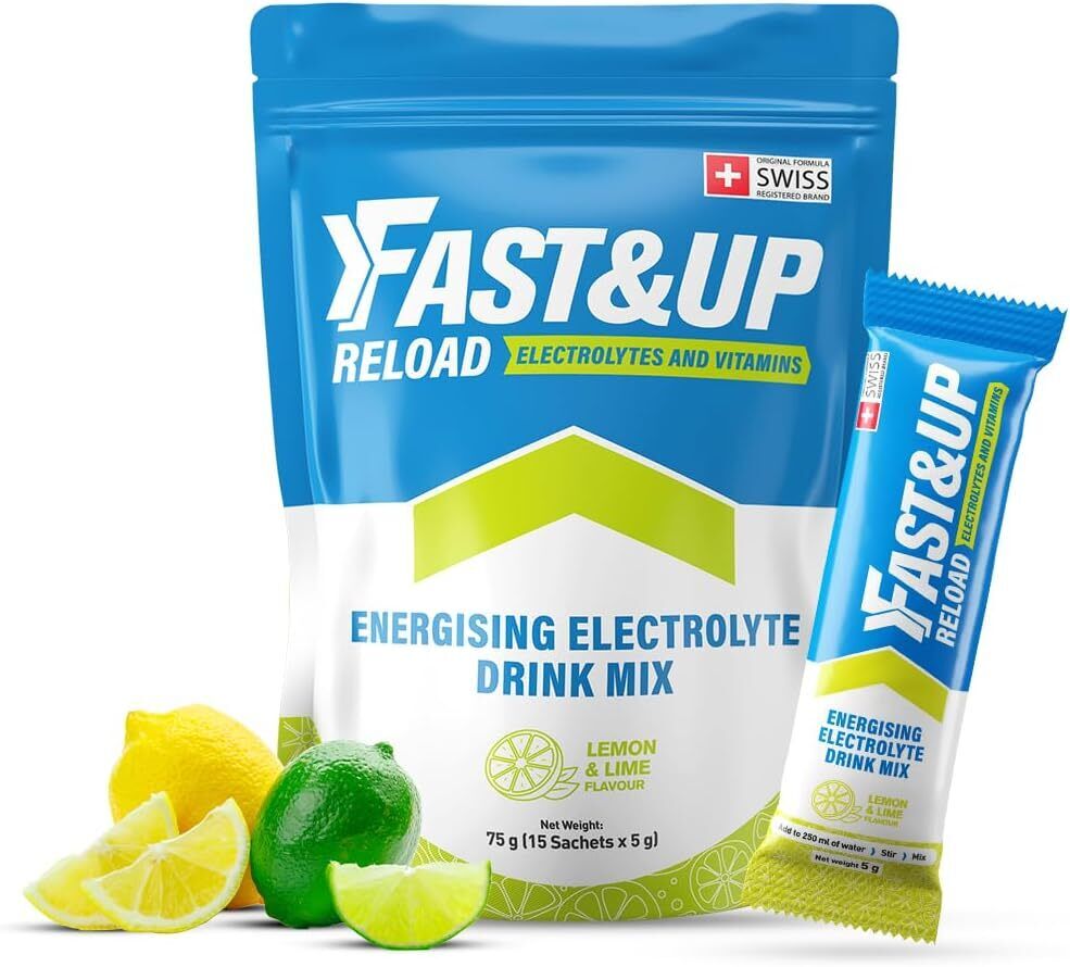 Fast&Up Reload Electrolyte Powder Drink Mix |15 sachets| 5 Electrolytes & Vitamins for Instant Hydration & Energy | (Lemon & Lime)