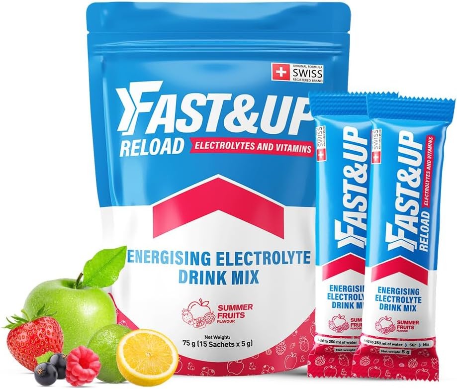 Fast&Up Reload Electrolyte Powder Drink Mix | 15 sachets | 5 Electrolytes & Vitamins for Instant Hydration & Energy |(Summer Fruits)