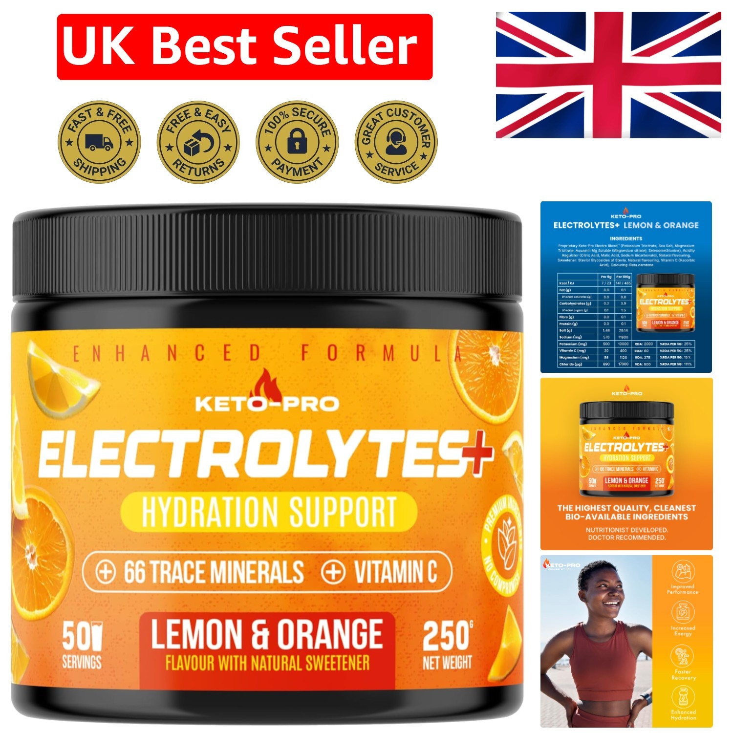 Fast-Acting Keto Electrolytes Powder 250g - 66 Trace Minerals for Recovery